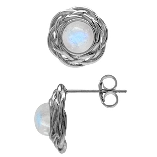 Silvershake Natural Moonstone White Gold Plated 925 Sterling Silver Celtic Weave Knot Stud Post Earrings