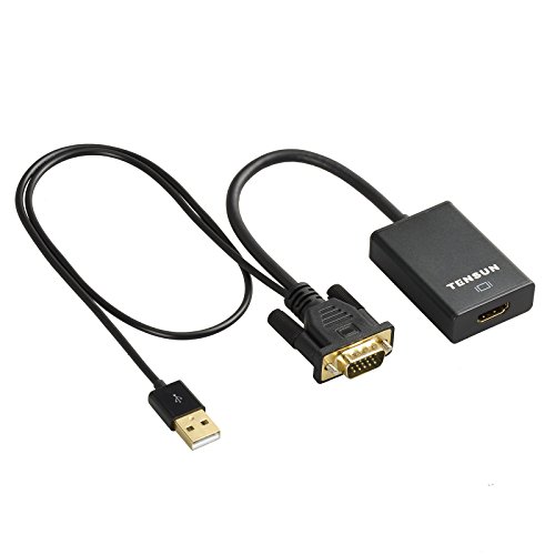 VGA to HDMI Converter, Tensun VGA to HDMI Cable 1080P Full HD Adapter All-in-one with Audio for Displays, Laptop, HD TV, Monitors and More - Black