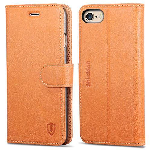 iPhone 6 Case, SHIELDON Dual Layer Shock Absorbing Premium Genuine Leather [Stand Feature] [Card Holder] Wallet Cover Flip Case Compatible iPhone 6/iPhone 6s Brown