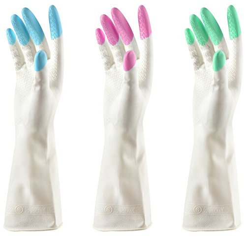 Zicome 3 Pair Reusable Waterproof Household Latex Gloves for Kitchen Dish Washing Laundry Cleaning