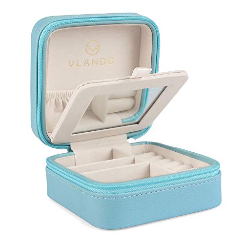 Vlando Macaron Small Jewelry Box, Travel Storage Case for Rings and Earrings (Blue)