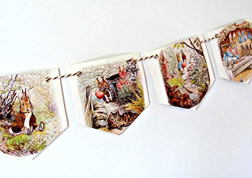 Beatrix Potter nursery banner. Benjamin Bunny paper garland. Babyshower gender neutral gift.