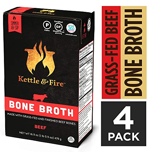 Beef Bone Broth Soup by Kettle and Fire, Pack of 4, Keto Diet, Paleo Friendly, Whole 30 Approved, Gluten Free, with Collagen, 10g of protein, 16.9 fl oz (Packaging May Vary)
