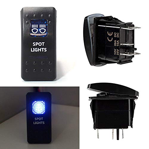 iJDMTOY (1) Rear Lights 5-Pin SPST ON/OFF Blue LED Indicator Rocker Switch For Car Truck 4x4 Jeep Boat For LED Work Lights, Rear Fog Lights, Back up Reverse Lamps, etc