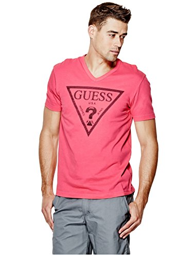 GUESS Men's Bordeaux Logo V-Neck Tee