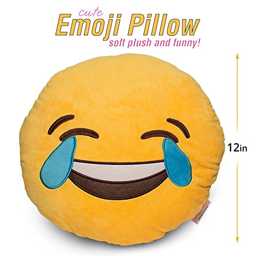 BRITENWAY Large 14" Emoji Cute Pillow Tears of Happiness Face - Laughing Joy Yellow Stuffed Soft Plush and Funny Set of All Collection - Perfect Fun Item for All Ages