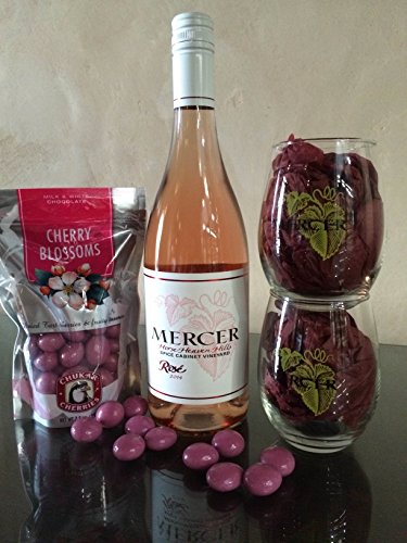 Mercer Estates Valentine's Day Gift Pack with Chukar Cherries, Wine Glasses and Rose, 1 x 750 mL