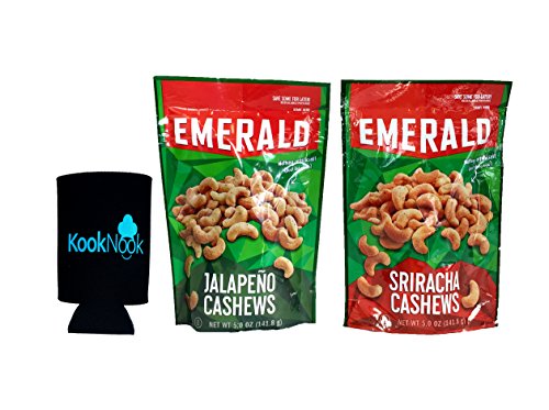 Emerald Sriracha & Jalapeno Cashews 2 Flavor Variety Bundle with Bonus Can Koozie