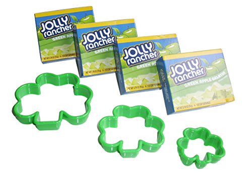 Jolly Rancher "Luck Of The Irish" Shamrock Jello Kit: Includes 4 (2.79oz) Green Apple Jello And 3 Shamrock Cutter Shapes (7-Pieces)