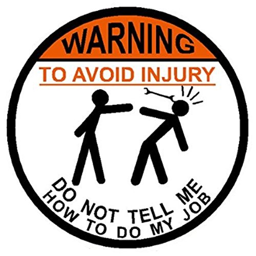 2-Pack | WARNING To Avoid Injury Don't Tell Me How To Do My Job | 2" circle Hard Hat vinyl decal | Car sticker