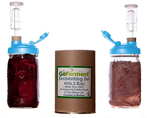 Go Ferment! Wide Mouth Mason Jar Mold Free Anaerobic Fermenting Kit w/Recipe E-book (2 Pack, Blue)