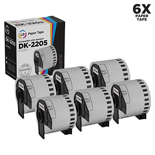 LD Compatible Paper Tape Replacement for Brother DK-2205 2.4 in x 100 ft (White, 6-Pack)