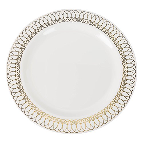 Exquisite 40-Pack Gold Ovals Design Plastic Plates (20-dinner 20-dessert) Set Premium Heavyweight Plastic Wedding Plates"Looks Like China"