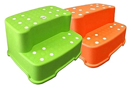 Tenby Living 2-Pack Green and Orange Extra-Wide, Extra-Tall Jumbo Step Stool with Removable Non-Slip Caps and Anti-Slip Rubber Grips