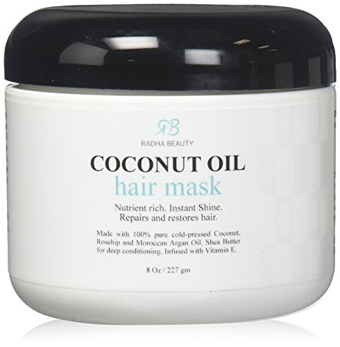 Coconut Oil Hair Mask - Deep Conditioner with 100% Cold pressed Coconut, Argan, Rosehip oil & Shea Butter - Repair and Moisturize Dry, damaged or Color Treated hair - for all hair types 8 Oz