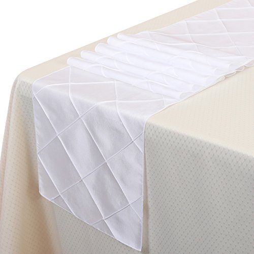 Remedios 12x108 Inch Pintuck Taffeta Table Runner Wedding Decoration White