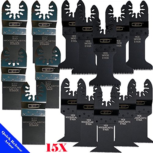 MTP Tm 15 Bi-matal/ Fine/ Coarse Assorted Saw Blade Quick Release Universal Fit Multi Tool Oscillating Multitool Saw Blade for Craftsman Rockwell Fein Multimaster Porter Cable Black & Decker Bosch