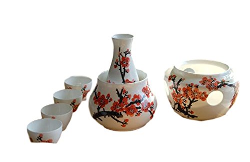 Sake Warmer Japanese Sake Bottle -3.38 Fl Oz- And 4 Cups Set