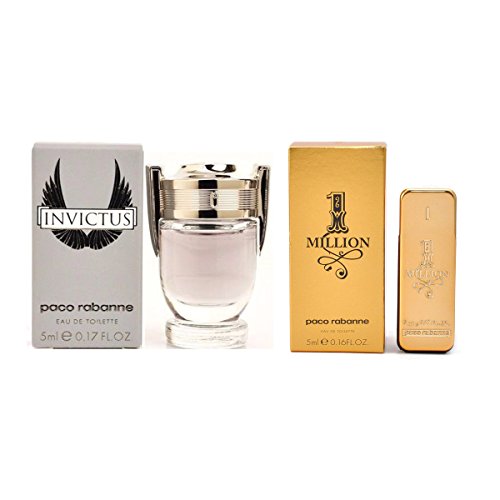Paco Rabanne Miniature Duo Set for Men; Bundle Mini Set of Paco Invictus & Paco 1 Million EDT Mini Size Fragrances for Men. Individually Boxed and Ready for Gifting. Both are 5ml Splash On (Not Spray)