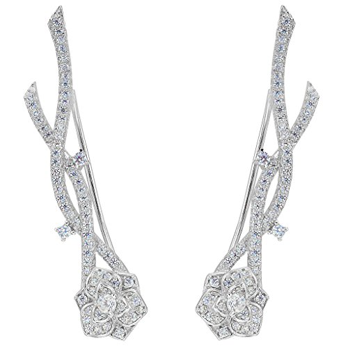 EVER FAITH 925 Sterling Silver CZ Flower Ear Cuff Wrap Sweep Hook Wedding Earrings 1 Pair Clear
