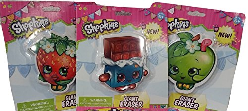 Set of 3 Giant Shopkins Erasers: Strawberry Kiss, Cheeky Chocolate & Apple Blossom