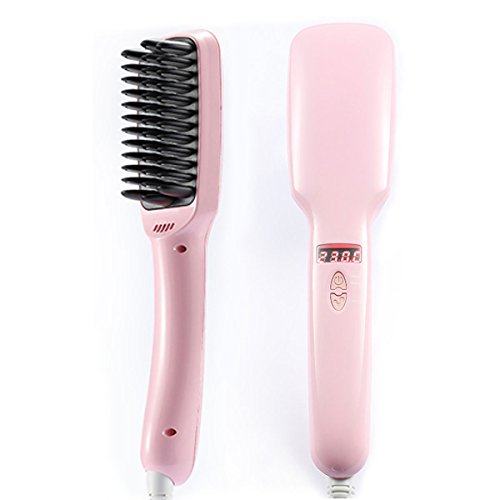 WinTech Hair Straightener Brush, Anion instant Magic Silky Straight Hair Styling, Anti Scald Anti Static Ceramic Heating Detangling Hair (Pink)