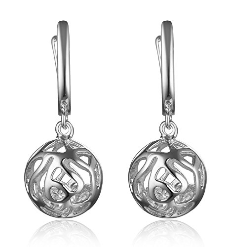 Lanfeny Sterling Silver Dangle Earrings Filigree Hollow Ball with Crystal Cubic Zirconia Encased