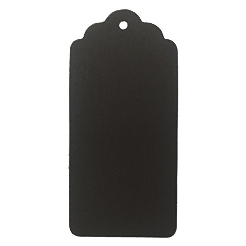 LWR Crafts 100 Hang Tags Scalloped Top Rectangle with Jute Twines 100ft (3 3/4" x 1 3/4", Black)