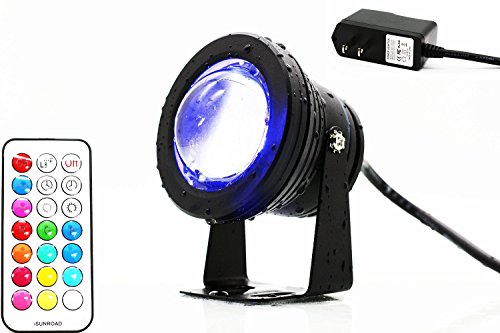 DLS&SH 10W 12V Memory Function RGB 16 Colors Changing LED Underwater Light Spotlight Flood Timing Setting for Fountain pond Landscape Garden Aquarium Safer Adapter 12V Waterproof Lamp (Black)