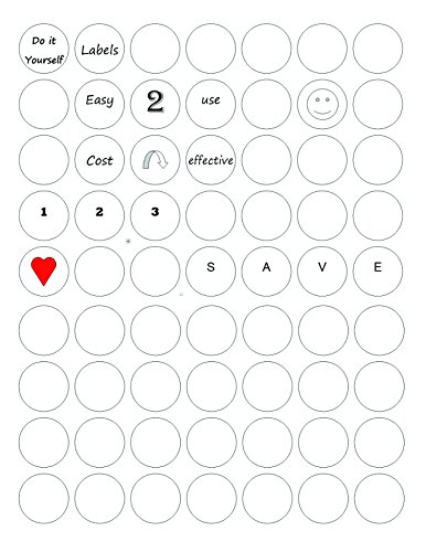 Removable Round White Labels Self-Adhesive, Full Sheet, DIY, 25 mm 1-Inch Diameter, color coding Pack of 654 stickers, TEMPLATE INCLUDED