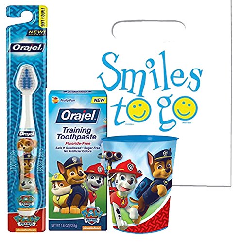 Paw Patrol 3pc. Little Pup's Toddler Training Oral Hygiene Set! Paw Patrol Soft Manual Toothbrush, Fluoride Free Training Toothpaste & Mouthwas Rinse Cup! Plus Dental Gift Bag & Tooth Saver Necklace!