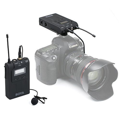 UHURU BOYA UHF Professional Omni-Directional Lavalier Wireless Microphone Recorder System for ENG EFP DV DSLR Camera Camcorders (48 Channels, 100m Operation range, 6 Hours)