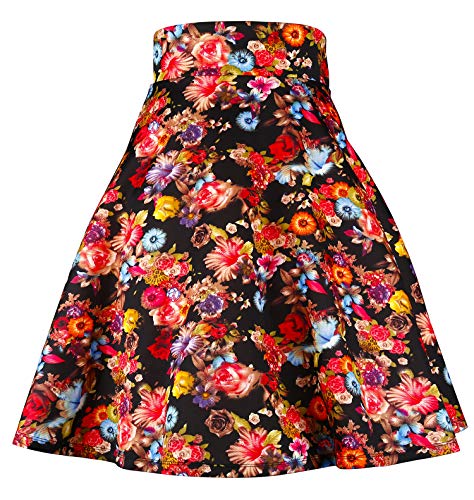 Modeway Elastic Waist Pleated Skater a line Midi Skirts for Women with Plus Size