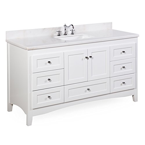Kitchen Bath Collection KBC38601WTWT Abbey Single Sink Bathroom Vanity with Marble Countertop, Cabinet with Soft Close Function & Undermount Ceramic Sink, 60", White