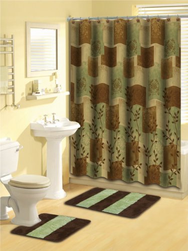 Empire Home 331 Luxury Polyester 15-piece Bath Set, Brown & Green with Ceramic Hooks