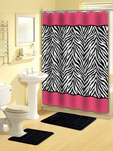 Empire Home Luxury 15-piece Bath Set, Pink & Black Zebra with Ceramic Hooks