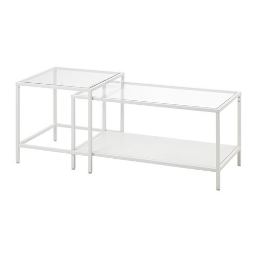 Vittsjo Nesting Tables Set of 2 White Glass Adjustable Feet