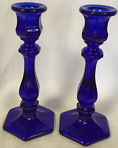Candlestick Holders Set of 2 - Paneled - Mosser Glass USA (Cobalt Blue)