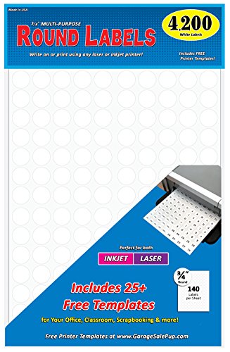 Pack of 4200, 3/4 inch Round Circle Dot Labels, 8 1/2 x 11 Inch Sheet, Fits All Laser/Inkjet Printers