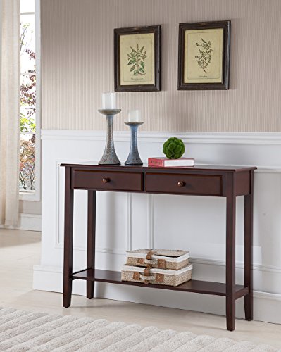 Kings Brand Furniture - Sawyer Wood Console Entryway Table with 2 Drawers, Walnut