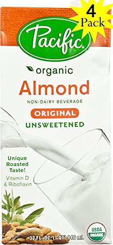 Pacific Beverages Unsweetened Almond Original, Gluten Free, 32-ounces (4 Pack)