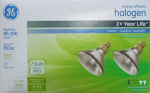 2 Pack GE Energy Efficient Halogen Spotlight Bulbs *1600 Lumens* only uses 80 Watts and Replaces 100W, PAR38, 2.7 Year Life