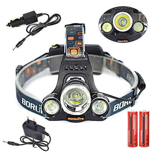 Titop 18650 Lanterns Set 8000 Lumens 3x XML T6 LED Headlight Package Linternas Frontales Cabeza Headlamp+ac/car Charger+2x18650 Rechargeable Battery Include Battery