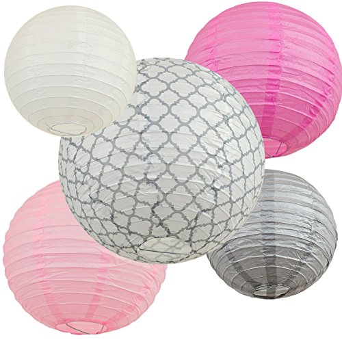 Bobee Paper Lanterns, pink and grey set, 5-pack