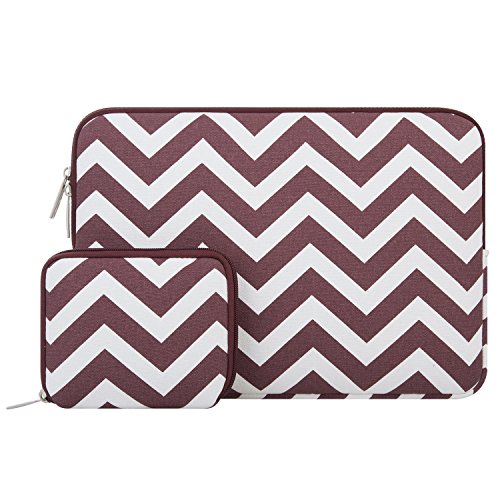 MOSISO Laptop Sleeve Bag Compatible 13-13.3 Inch MacBook Pro, MacBook Air, Notebook with Small Case, Chevron Style Canvas Fabric Case Cover, Wine Red