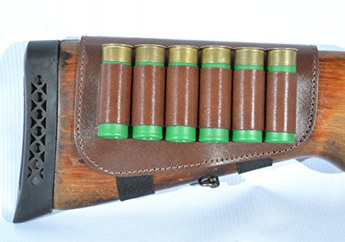 Buttstock LEATHER shotgun cartridge hold 6 shells OF 12 gauge (18.5 / 18.2 M)
