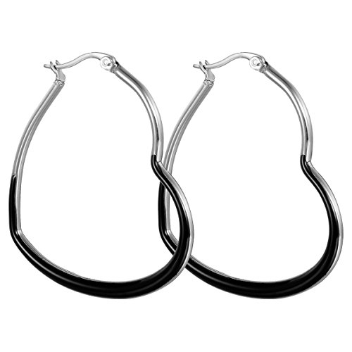 HooAMI Women's Stainless Steel Silver Black Big Hoop Earrings Heart Shape