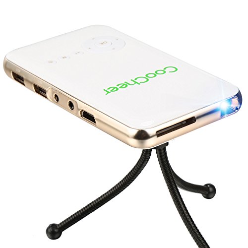 Coocheer Ultra-Thin Android WiFi Pocket Projector with Tripod and 5000mAh Built-in Rechargeable Battery (White)
