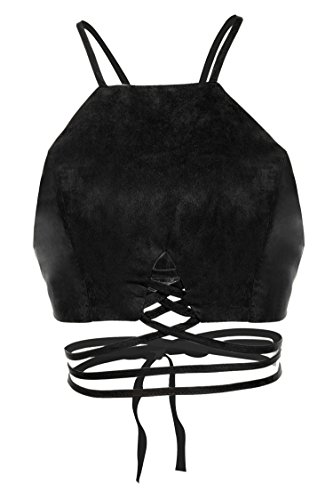 Zeagoo Women's Cut Out Self-tie Backless Spaghetti Straps Halterneck Crop Tops
