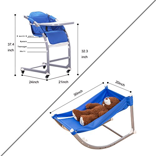 Sdadi Aluminum Alloy Adjustable High Chair, Rocker, Youth Chair, Leisure Chair 4-in-1, Three Point Belt, Removable Tray, Grow with Your Kids (Newborn High Chair - Adult Leisure Chair Blue)